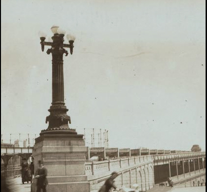 A glimpse at Google “street view” confirms. See also library’s picture: Digital ID of 730938F. It’s an old shot of 59th St stanchion. Matches yours, but yours has collar with the depending decorations upside down. Make a ransom note and send it to Dept of Transportation – could be a big score.
