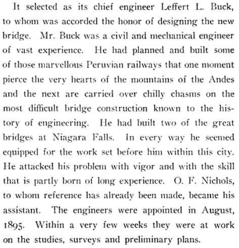 Bridge Commissioner Lindenthal commented on the age he lived in as being unique, knowing that the resources to conceptualize and build projects of this size only come along once or twice in the history of any city, and described himself as living in “The Age of Iron”.