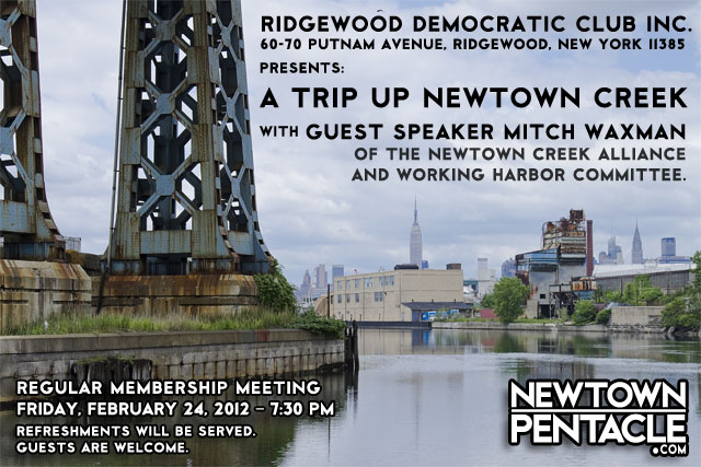 Your humble narrator will be narrating humbly on Friday, February 24th at 7:30 P.M. for the “Ridgewood Democratic Club, 60-70 Putnam Avenue, Ridgewood, NY 11385” as the “Newtown Creek Magic Lantern Show” is presented to their esteemed group. The club hosts a public meeting, with guests and neighbors welcome, and say that refreshments will be served.